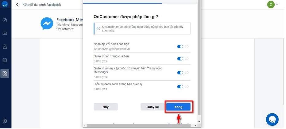 Select the Done button to complete the connection with Messenger Fanpage.