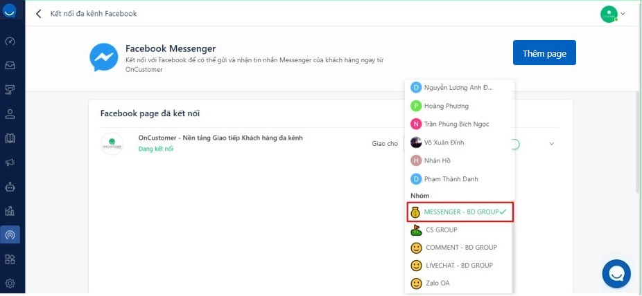**Step 1**: At menu => Select Menu Multi-channel connection => Select Messenger.